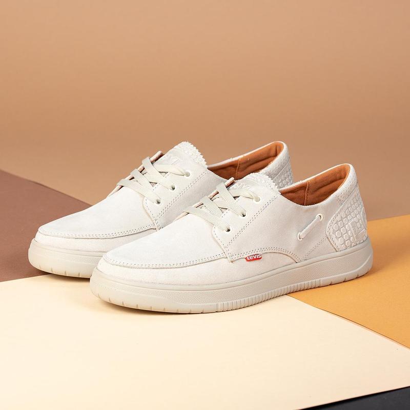 Мужские туфли, мокасины на шнуровке бежевые натуральная замша / кожа levis ml