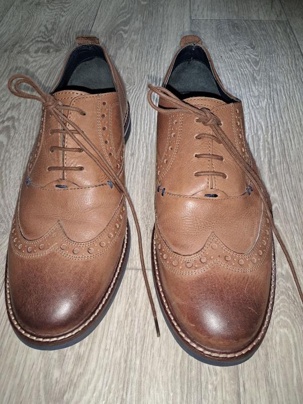 Непревзойденные, стильные и очень качественные мужские броги известного британского бренда Jones Bootmaker из натуральной кожи извне и в середине! Стильного, коричнево-рижого кольору. В очень хорошем состоянии! Размер 41, по стельке 26.5 см.