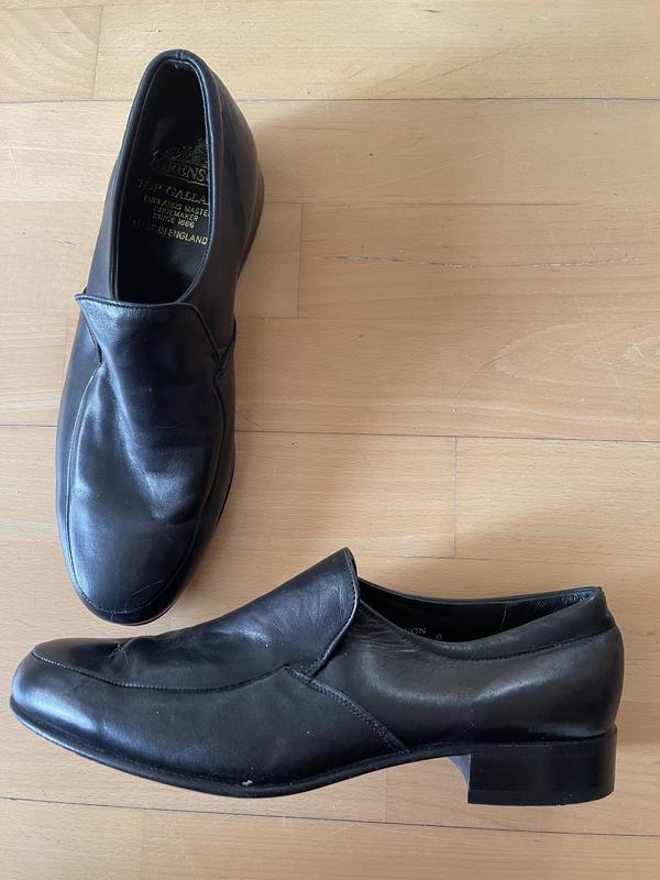 Чоловічі туфлі з мʼякої шкіри, бренд Grenson, Англія. Розмір 8( 42). Устілка 28 см, ширина 9,5 см. На нешироку ногу з низьким підйомом. Під язичком гумка. Стан нових. Дефектів немає. Дорогий бренд. Ціна в інтернеті 20000 - 30000 грн.