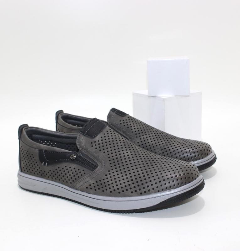 Серые мужские туфли с перфорацией, мокасины