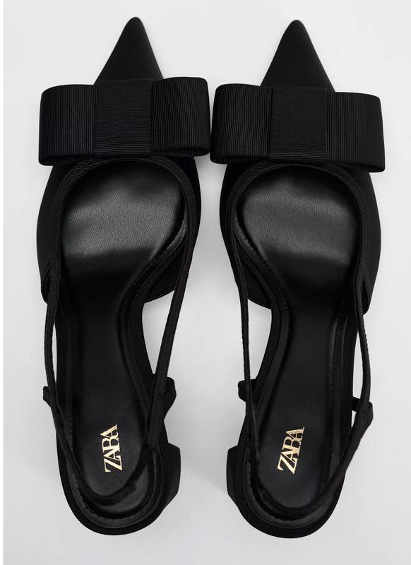 Туфли черные с текстиля Zara без задников с небольшим каблучком 6,5cм