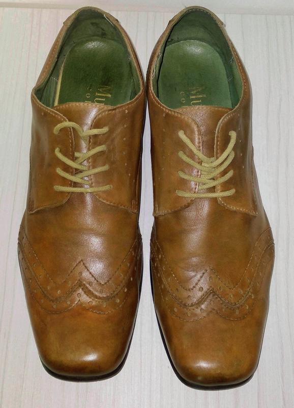 Мужские туфли из натуральной кожи. Прочные, легкие и удобные за счет закругленной подошвы. По стельке 27-27,5, слегка зауженный носок, носили на ногу 26.