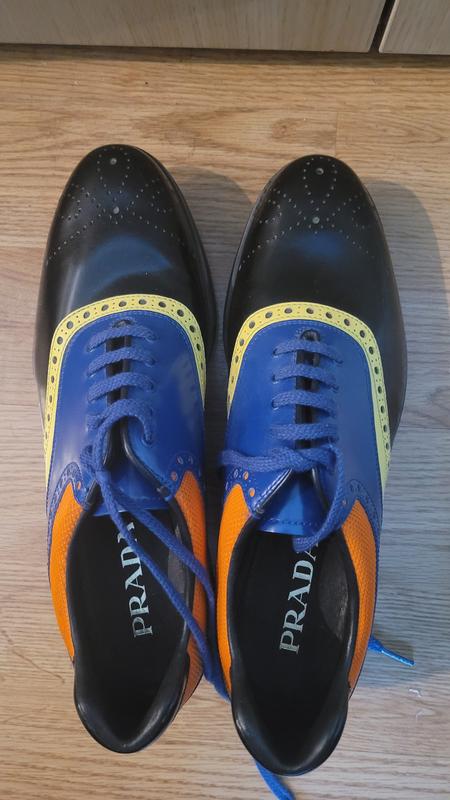 Мужские необычные туфли Prada. кожаные,оригинал. Мужу по стилю не подошли. по стельке 28см, немного жесткие как на меня. задавайте все вопросы. могу отправить приближенным. возвращения нет. через шкаф не отправяю.