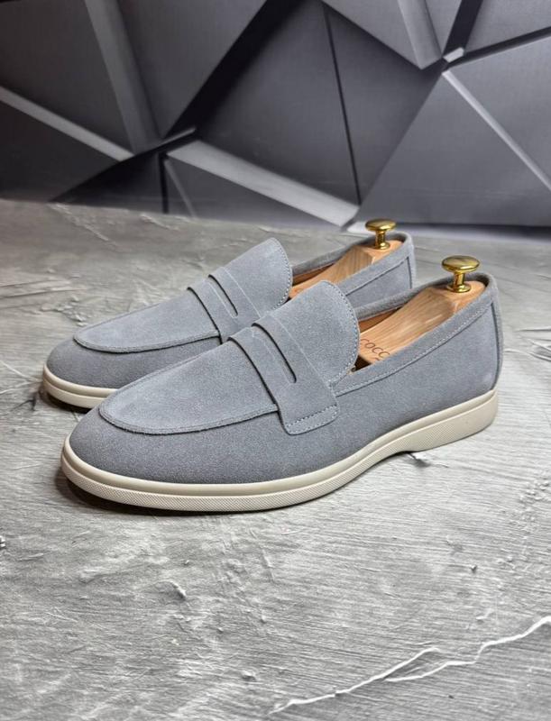 Лоферы мужские натуральные замша серые, замшевые туфли мокасины 8220