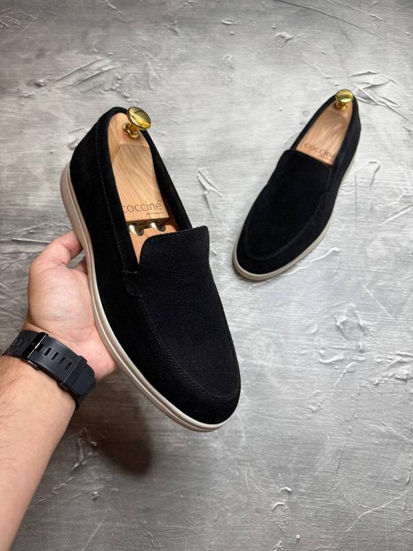 Качественные замшевые черные мужские лоферы туфли