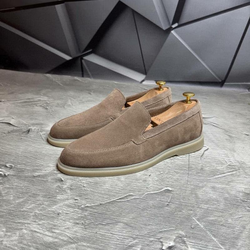 Мужские лоферы туфли бежевые натуральная замша 2500