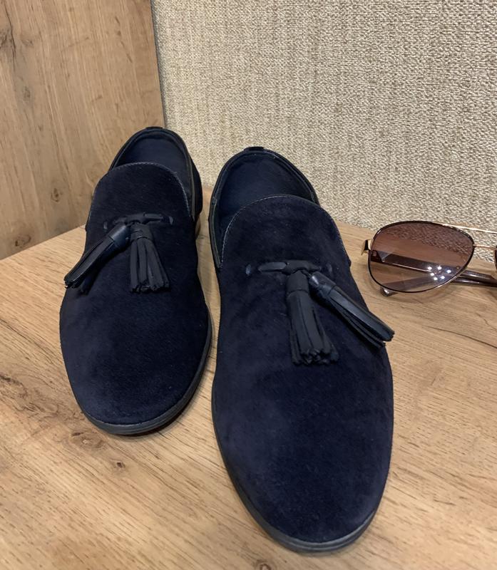 Замшевые туфли в идеальном состоянии, размер 41, цвет темно синий. Стелька от края до края, с учетом узкого носка 28 см. На стопу 26-26,5 см будет идеально