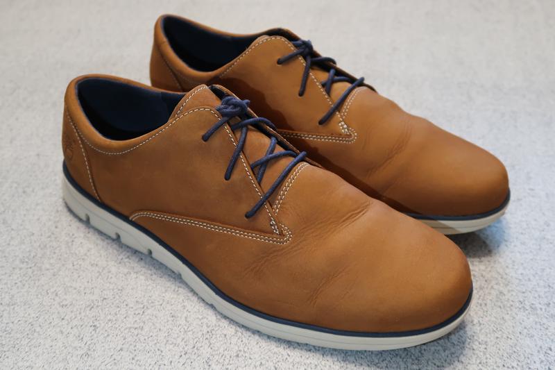 Туфли Timberland оригинал - 46 размер, по стельке - 30 см. Подошва - пена + резина. Снаружи - кожа нубук, внутри - текстиль, стелька - пена + текстиль. Ширина по стельке в самом широком месте - 10 см. Очень легкие, качественные, мягкие и удобные. Отличное состояние. Цена - 1705 грн.