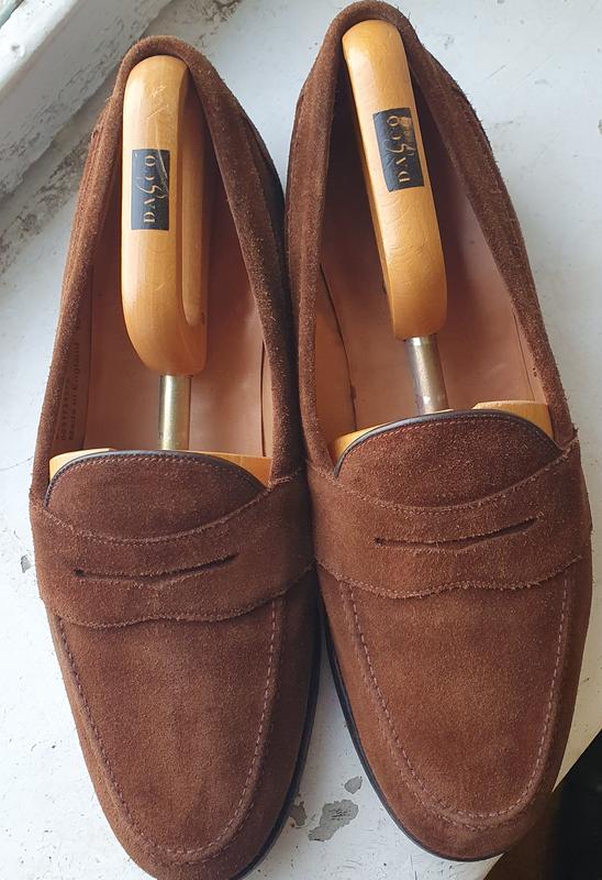 превосходные мужские пенни- лоферы известного британского бренда LOAKE размер 45 классические пенные лоферы из коричневой замши, сделанные в Англии (“Made in England” виден внутри).кожаная подошва кожаная стелька обуви высокого качества