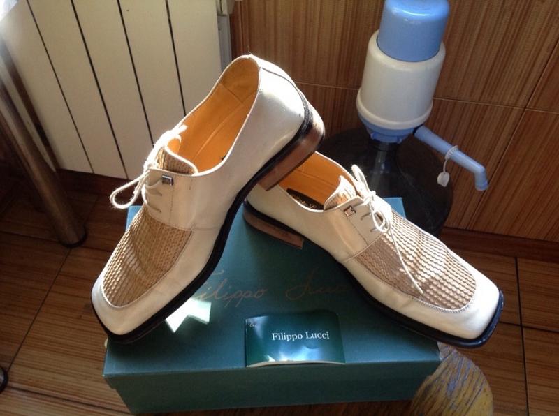 Туфлі чоловічі шкіряні,бежевого кольору.Дуже ефектно і гарно виглядають.Зручні в носінні.Красива вставка попереду,надає вишуканий зовнішній вигляд.Виробництво Італія.Нюанс:подряпина і дві невеликі точки (все на фото).Довжина устілки 27.5 див. Дивіться мої інші оголошення.