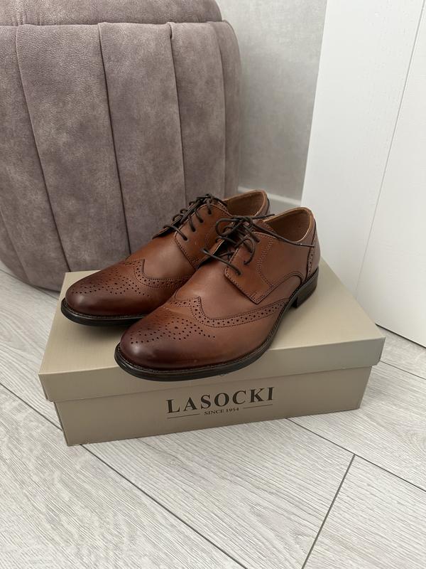 Майже нові, вдягались в приміщенні на три годинки десь. Виявились трошки завеликими. Йдуть на повний 43р, може навіть більше на 43,5. Довжина устілки 28,5, але треба враховувати звужений носок. Натуральна шкіра.