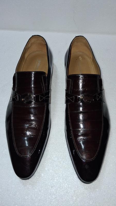 Туфли классические, бордово коричневые, полностью кожаные, верх лаковая кожа с вставками кожи ската, состояние новых