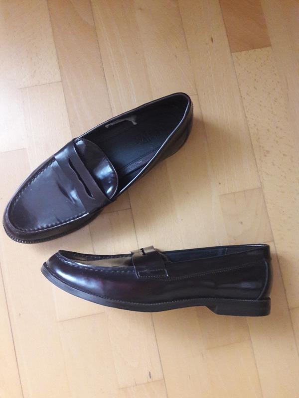Туфли 44 размера на узкую ногу с низким подьем. Стелька 29,5 см. Качественный кож.заменитель. Бордово - коричневого кольору.