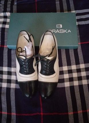 Супер красивые мужские туфли, знаменитого бренда Braska, бежево-черного цвета, на шнурках.