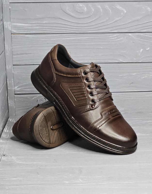 Шкіряні чоловічі коричневі туфлі на шнурках тм bumer!!