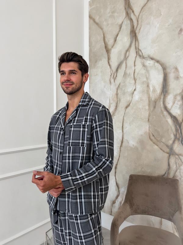 Комфортный мужской домашний комплект пижамные штаны + рубашка. Брюки с карманами. Пояс на резинке с регулируемой кулиской. Мужской пижамный комплект - это не только одежда для сна, но и удобная теплая одежда для дома. Цвет: клетка серо-черная. Ткань фланель: Хлопок 70%, полиэстер 30%, Турция. Производитель Украина. Плотность: 160 г/м2. Эффект: легкий начес, односторонний внутренний. Размер: M; L; XL, 2XL, 3XL. 1550 грн.