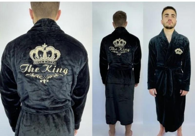 Халат чоловічий шаль із вишивкою. Матеріал виробу махра велсофт плюшева, тепла, м'яка та приємна до тіла, з двома кишенями та двома вишивками з спереду та на спині, під пояс. Розмір і вартість: 46/48 - 1050 грн 50/52 — 1050 грн 54/56 - 1100 грн