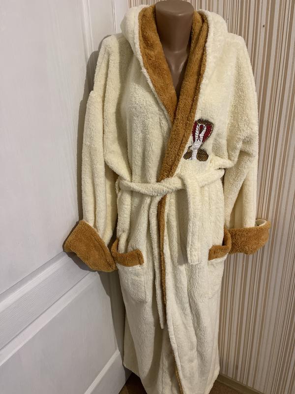 Мужской халат длинный с коброй. Плотная махра, капюшон, карманы с обеих сторон