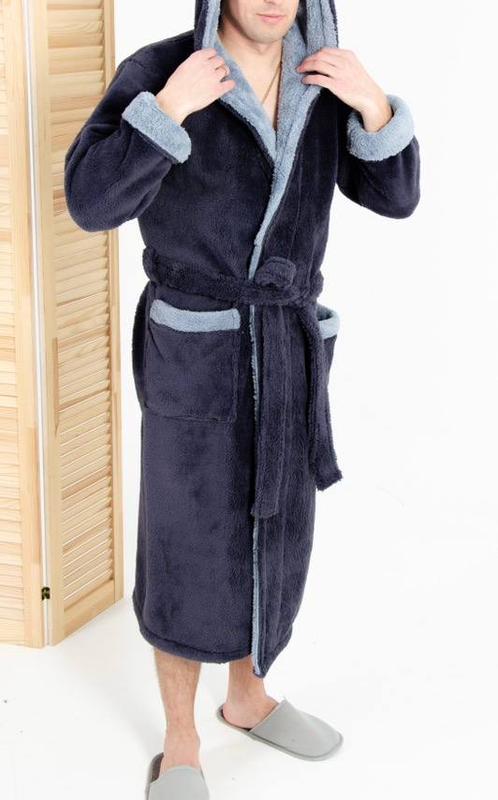 Стильний чоловічий махровий халат R зі зручним капюшоном і двома глибокими кишенями Халат махровий з двостороннім капюшоном, рукав довгий, довжина халата від 126см. Махровий чоловічий халат - це стандарт домашнього комфорту і затишку.  Насичений колір, продуманий крій та ідеальна фактура матеріалу дозволять насолодитися кожною хвилиною відпочинку та забути про незручний одяг, який сковує рухи. Розміри L, XL, XXL, XXXL