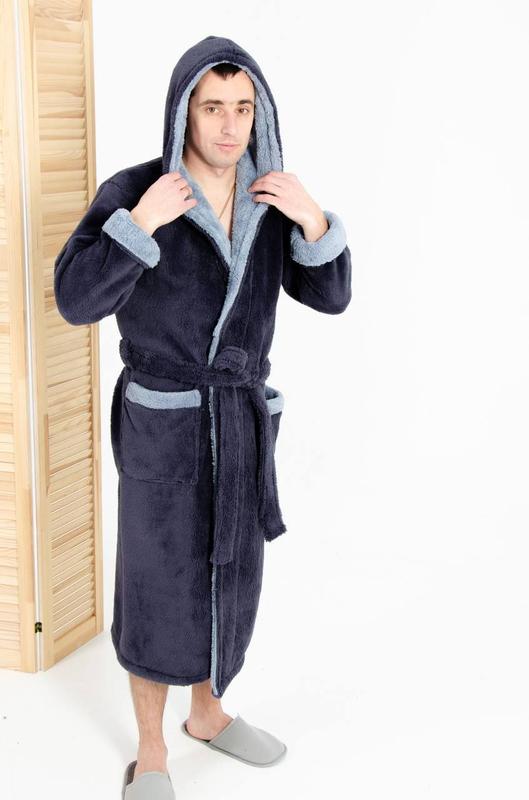 Халат велсофт теплый меди с капюшоном мужской 7 цветов