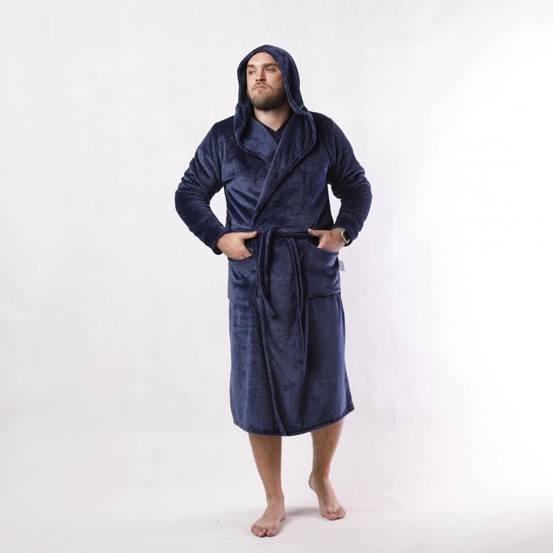 Красивый мужской халат на запах с капюшоном, холст вельсофт-махра. Халат идет с карманами и так же в комплекте идет пояс На фото модель в 48 ом размере. Срок отправки заказа осуществляется в течение двух дней.