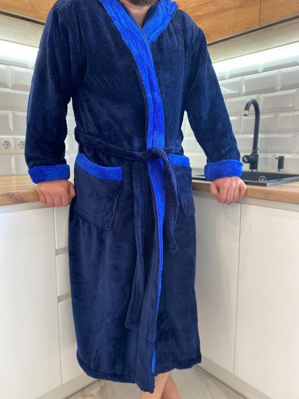 Стильный мужской махровый халат R с удобным капюшоном и двумя глубокими карманами Халат махровый с двухсторонним капюшоном, рукав длинный. Махровый мужской халат – это стандарт домашнего комфорта и уюта. Насыщенный цвет, продуманный крой и идеальная фактура материала позволят насладиться каждой минутой отдыха и забыть о неудобной одежде, которая сковывает движения. Размеры L, XL, XXL, XXXL