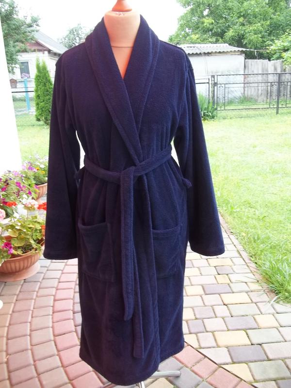 Б/У,в хорошем состоянии ( XL - 52 / 54 р ) Marks Spencer Мужской халат флисовый теплый Длина по спинке - 122 см Ширина плеча - 50 см Длина рукава от плеча - 65 см Грудь - 140 см Талия - 140 см Бедра - 155 см Материал - теплый флис (микрофибра) толстый