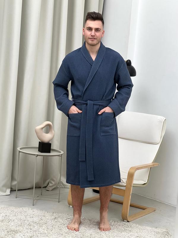 Халат с шалевым воротником выполнен из высококачественной вафельной ткани. Ткань: 100% Турецкий хлопок (Ткань не декантированная,после стирки дает усадку до 6%)