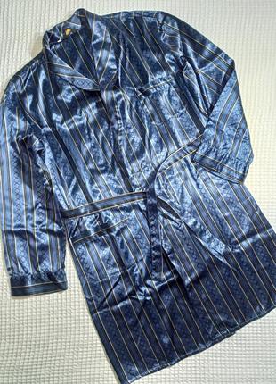 Халат домашний, мужской в полоску,под пояс на запах, ткань атласная,коттон, основа байка,в идеальном состоянии Размер указанного 52 Замеры на фото