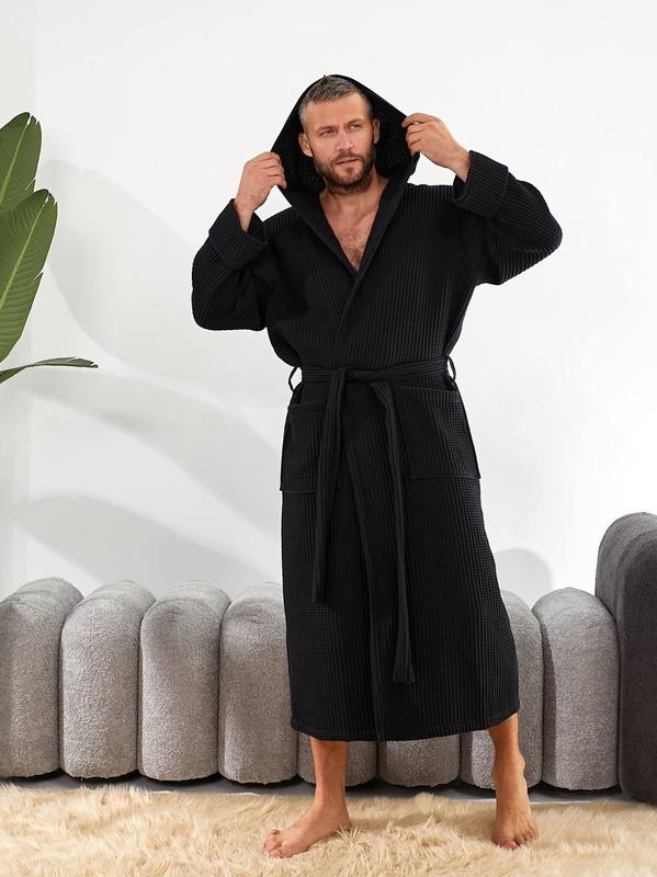 Мужской длинный черный халат с карманами вафля фемили лук, унисекс, женский хлопок