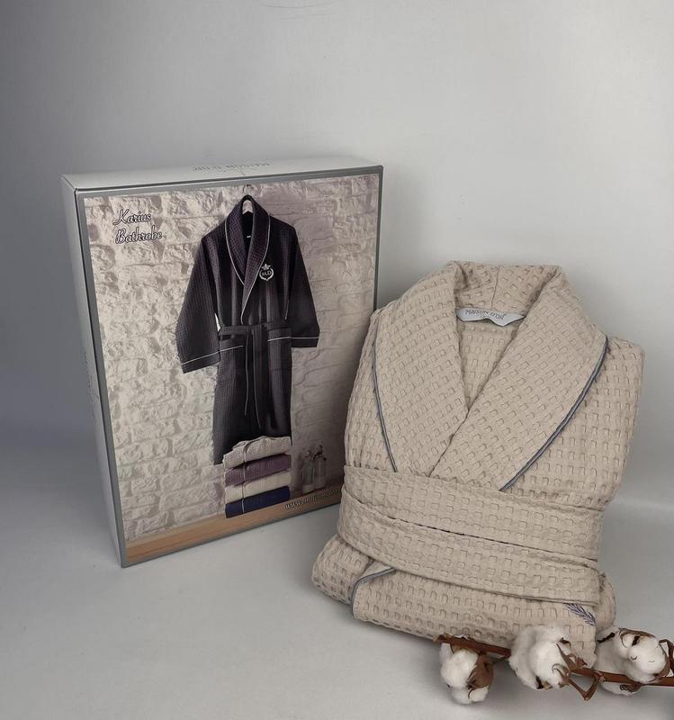 Чоловічий вафельний халат від турецького виробника "Maison D'or ". Виготовлений з 100% бавовни. Халат декорований вишитим логотипом Maison D'or, з двома кишенями, на запах. Упакований в подарункову коробку від виробника. Матеріал: Вафельне полотно (100% бавовна). Розмір: S. Виробник: Maison D'or (Туреччина/Франція).
