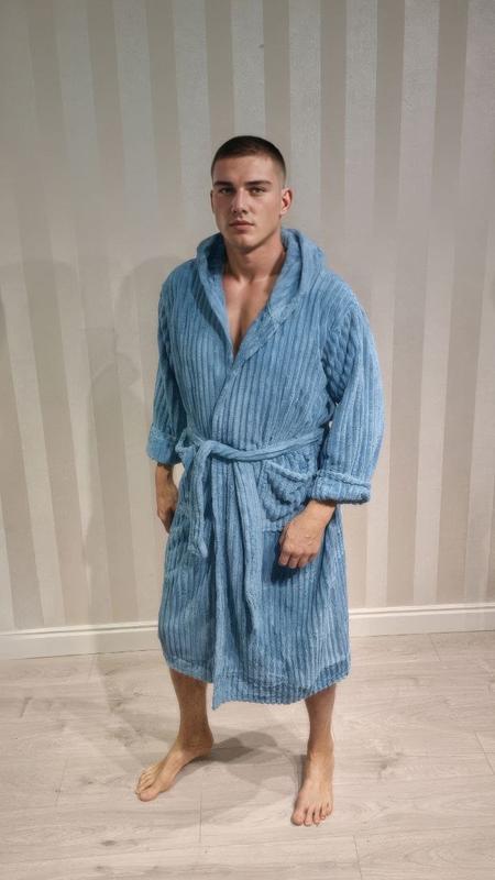 Удобный унисекс халат из микрофибры с капюшоном на запах текстурный качественный