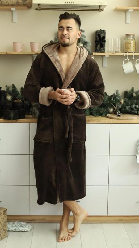 Теплий халат велсофт махра у темно-коричневому кольорі.