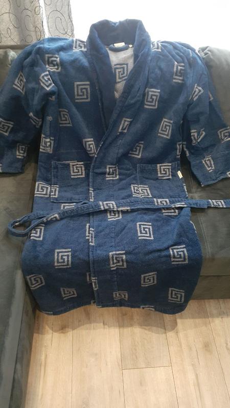 Халат мужской натуральный махровый темно синий в клетку. теплый под пояс 52-56 nusa