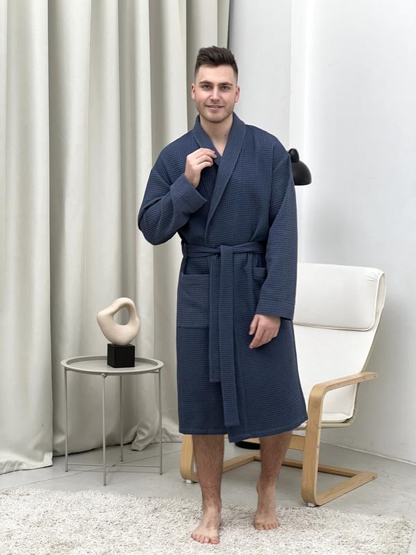 Вафельний чоловіків халат сапфір