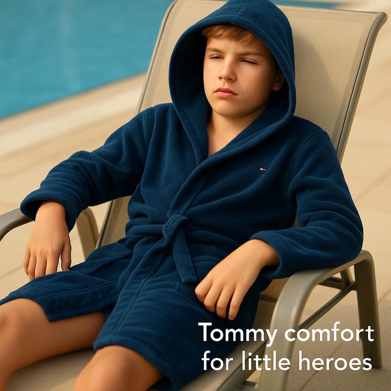 ✨ Не волнуйся за подарок - он уже упакован! 🎁 Премиальный халат для юного джентльмена - комфорт, стиль и бренд в каждой детали. Мягкий, теплый и очень приятный к телу, этот халат станет любимым после душа, купания или тренировки в бассейне. Особенности модели: 100% натуральный хлопок (Terry Cotton) - отлично впитывает влагу, дышит, не парит. Капюшон для максимального затишку. Пояс в комплекте, два удобных кармана. Тисненая надпись HILFIGER на спине, фирменная лента в цветах бренда внутри. Темно-синий цвет - классика, которая подходит всем. Произведено в Турции, оригинальный ярлык Tommy Hilfiger. Состояние: отличное, без дефектов, новое, но без бирки. Заміри уточню ще, при потребі. основные плечи - 45 см. длина от воротника до низа - 93 см. объем груди - 48 см.