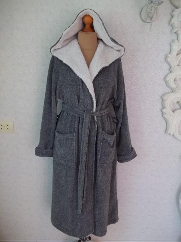( 52 / 54 р ) мужской халат флисовый с капюшоном б / у