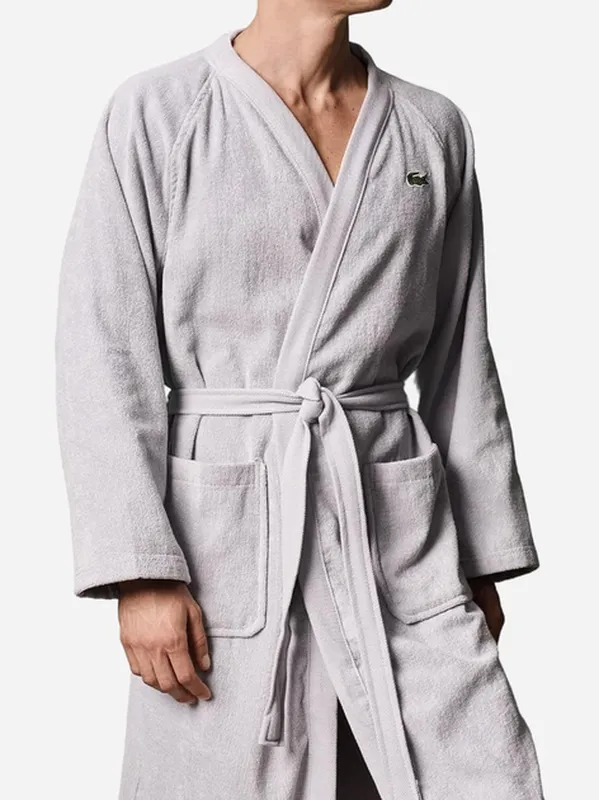 Халат мужской хлопковый демисезонный lacoste, серого цвета, one sice