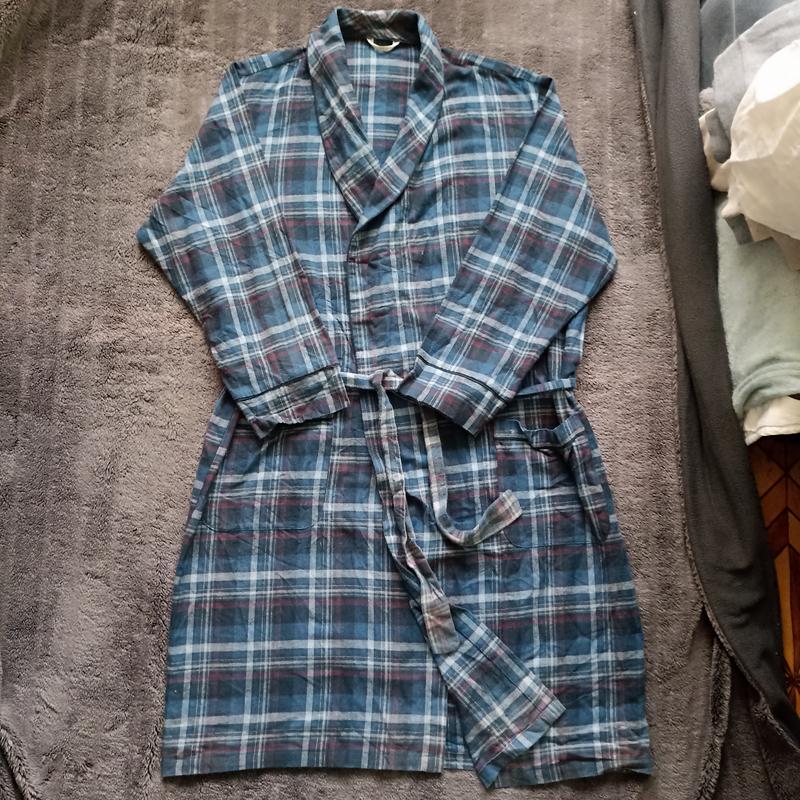 Качественный и комфортный домашний халат от известного британского бренда Marks & Specer. Выполнен из мягкого, натурального хлопка (фланель), что делает его идеальным для уютных вечеров или утра за чашечкой кофе. 📝 Основные характеристики: Бренд: Marks & Spencer. Состав: 100% хлопок (cotton). Ткань дышащая, приятная к телу. Цвет: Темно-синий (Navy) с классическим принтом в клетку (красные и белые акценты). Состояние: Питательный, но в очень хорошем состоянии. Ткань сохранила цвет и мягкость. Особенности: Имеет два удобных накладных кармана, пояс в комплекте и контрастную темно-синюю окантовку по краям. 📏 Размер и замеры: Розмір на бірці: Large (L). На объем груди: 104–109 см (41-43 in). Крой: Свободный, регулируется поясом. ПОГ63, длина 116, рукав 79 от шеи