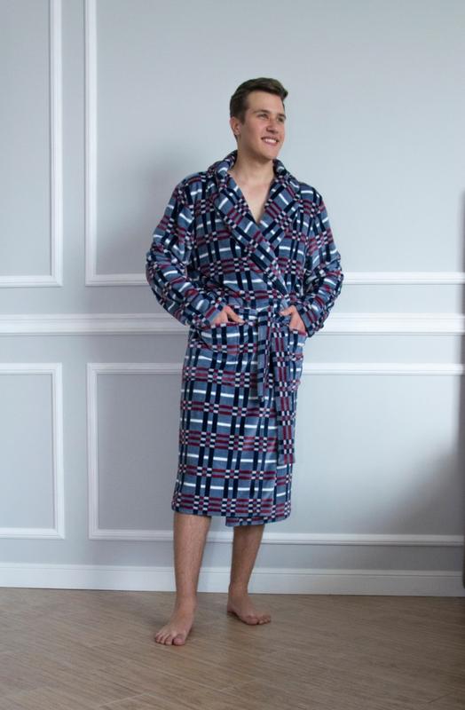 Тепленький халат в клітинку, з кишенями , від польського бренду Shato.