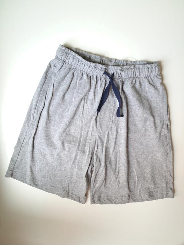 Недостатчик- дырка сзади у шва. На последнем фото Шорты для мужчины трикотажные серого цвета. Замеры длина 47, посадка 36, пояс 32 см