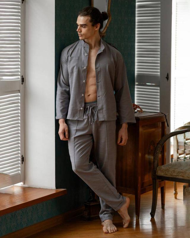 НОВИНКА❗️ Домашний костюм Мужской из льна Серый ▪️Артикул: 20739 ▪️Размеры: S, M, L, XL