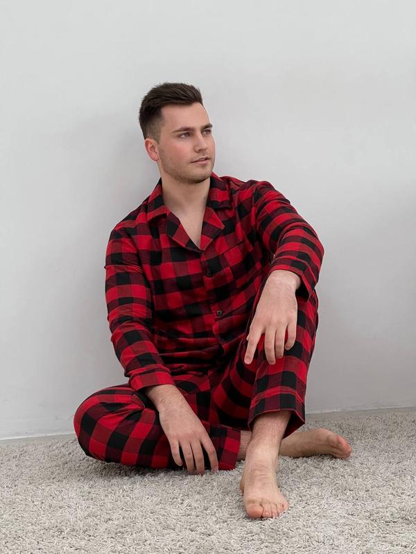 Комфортный мужской домашний комплект пижамные штаны + рубашка. Брюки с карманами. Пояс на резинке с регулируемой кулиской. Мужской пижамный комплект - это не только одежда для сна, но и удобная теплая одежда для дома. Цвет: клетка красный/черн Ткань фланель: Хлопок 70%, полиэстер 30%, Турция Плотность: 160 г/м2 Эффект: легкий начес, двусторонний Футболка - 100% бавовна Цвета: белый (арт f01), черный (арт f02) Размеры: S,M, L, ХL, 2XL, 3XL Цены: ✔️пижамные брюки + рубашка (арт: F701P): Размеры: M, L, ХL, 2XL ✔️пижамные брюки + рубашка + футболка белая (код: F701P_N+f01): штаны + рубашка + черная футболка (арт: F701P_N+f02): 1950 грн На модели (на фото) пижамный комплект размер М Параметры модели: Рост 184 Груди 104 Талия 88 Стегна 100