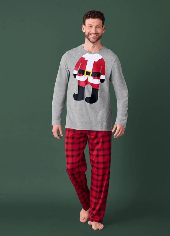 Пижама новогодняя мужская костюм для дома и сна livergy m, l, xl разноцветный в клетку
