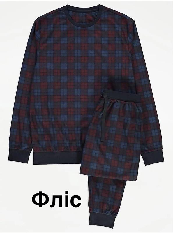 Розмір М. В упаковці як на фото. Піжама George. Комплект виготовлений з м'якого флісового матеріалу і призначений для домашнього використання або сну в холодну пору року. Особливості продукту Матеріал: М'який фліс (100% поліестер). Дизайн: Комплект складається з двох частин з картатим візерунком в темно-синіх і бордових тонах. Верх: Джемпер з круглим вирізом і довгими рукавами з манжетами. Низ: Штани повної довжини з еластичним поясом на шнурку, двома бічними кишенями і манжетами на щиколотках. Бренд: George, торгова марка, що належить британській компанії
