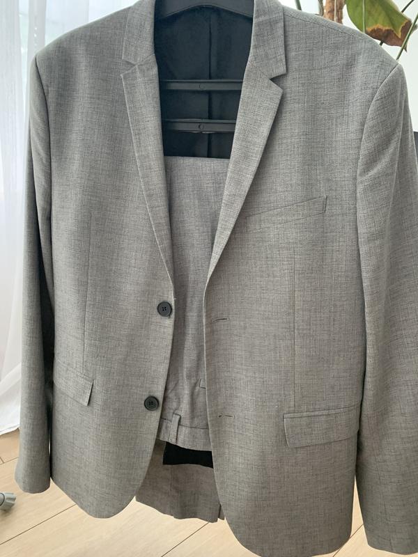 Шикарний костюм,стильний, молодіжний Розмір S-M Рукав 66 см Довжина піджака 70 см По плечам 44 см Брюки довжина 100 см півобхват талії 43 см Брюки заужені донизу!