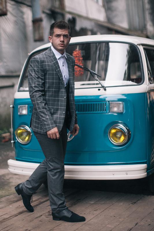 Костюм новий, з бірками. Жодного разу не був одягнений, не підійшов за розміром. 56 розмір (XL) /1.82/102 Заміри: напів обхват плечей- 48 під грудьми - 56 довжина піджака - 76 (від коміра) довжина брюк - 111 напів обхват брюк - 47