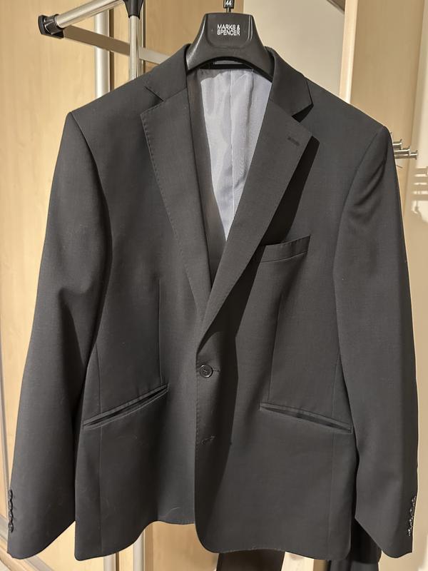 Колір - темно-сірий (графіт). Заміри (обʼєм в півоберта) Піджак: Груди 60 см Стегна 60 см Довжина по спині 82 см Рукав 65 см Брюки: Талія півоберта 50 см Довжина штанини 108 см