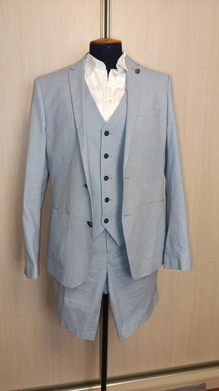Хлопковый костюм тройка. пиджак шорты и жилет