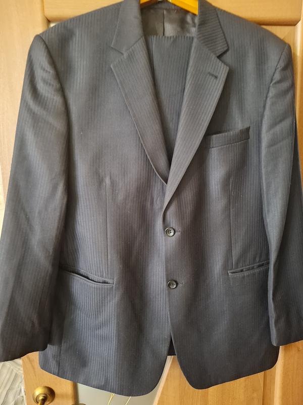 Продается костюм чоловічій, виробництво Німеччина, бренд "Bergs Hageman", розмір: 58/4, колір: темно-синий в чорну полоску, 100% шерсть, на два ґудзики, "легке б/в. Штани: - об'ем талії - 108 см. - довжина по зовнішньому шву - 103 см. - довжина по внутрешнему шву - 80 см. - об'ем бідер - 120 см. Піджак: - довжина плеч - 51 см. - обхват талії - 124 см. - обхват груді - 120 см. - довжина рукава - 65 см. - загальна довжина піджака - 78см. Відсилаю любим перевізником. Дивіться також мої інші оголошення.